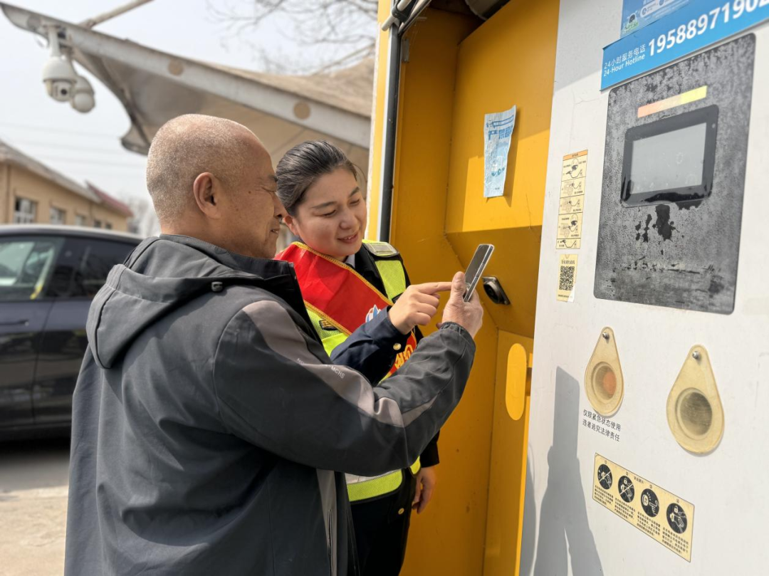 (图为服务区督导员协助司乘使用移动充电桩)